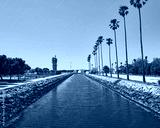Scenic view of palm trees near water channels from Ria de Aveiro at Oudinot garden in Portugal