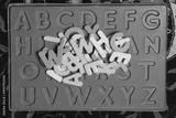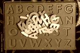 Top view of educational colorful spongy letters on carpet
