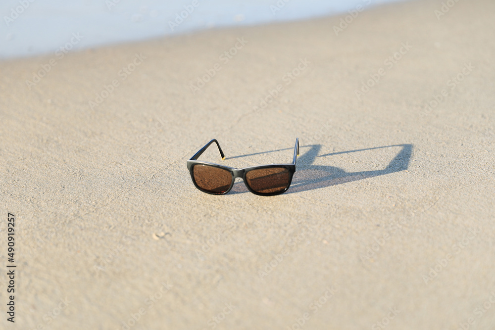 Sunglasses with shawdow on the sandy beach