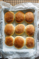 Homemade yeast dinner rolls stuffed with rose jam, top view