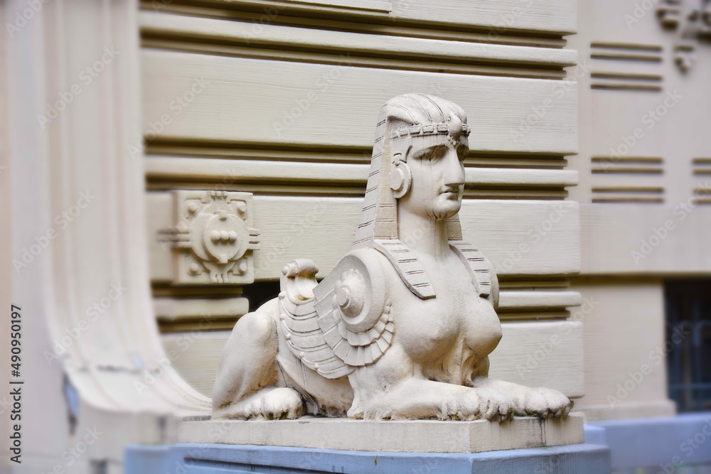 Fragment of Building in Art Nouveau architecture style in Riga, capital of Latvia; Alberta Street