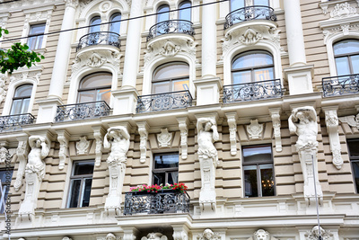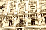 Fragment of Building in Art Nouveau architecture style in Riga, capital of Latvia;