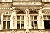 Riga, Latvia - Caryatide and Atlas House at Smilsu Street, Art Nouveau architecture in Riga