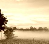 Atmospheric misty morning. An atmospheric misty sunrise over a meadow.