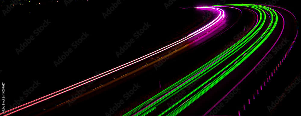 Night road lights. Lights of moving cars at night. long exposure red, blue, green