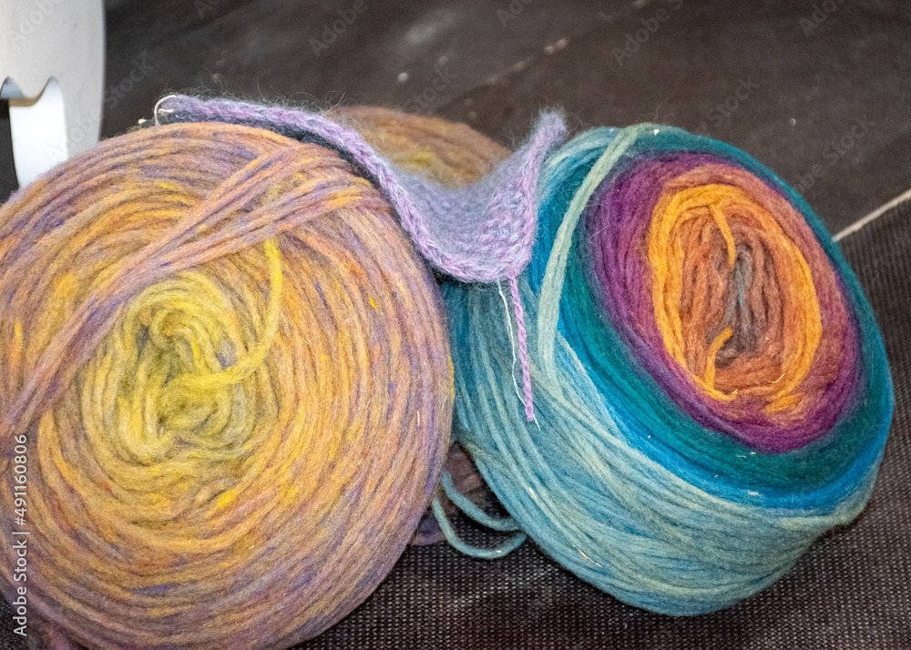 wool yarn threads, close-up of yarn texture, knitting as a hobby