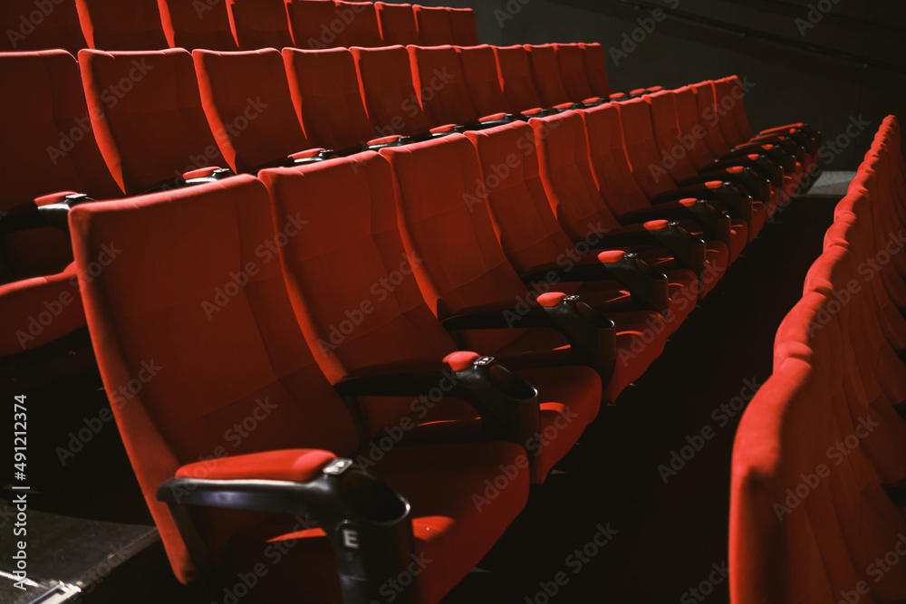 Red colored cinema seats with no people