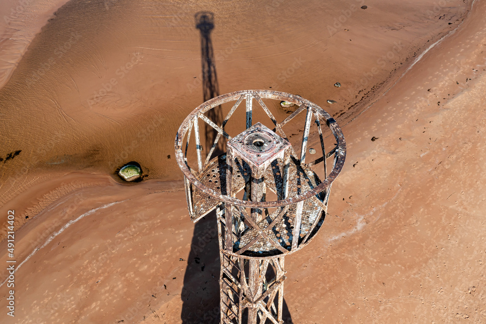 abandoned ruins of Kurmrags lighthouse on the shore of the Baltic Sea, Latvia, top view, closeup