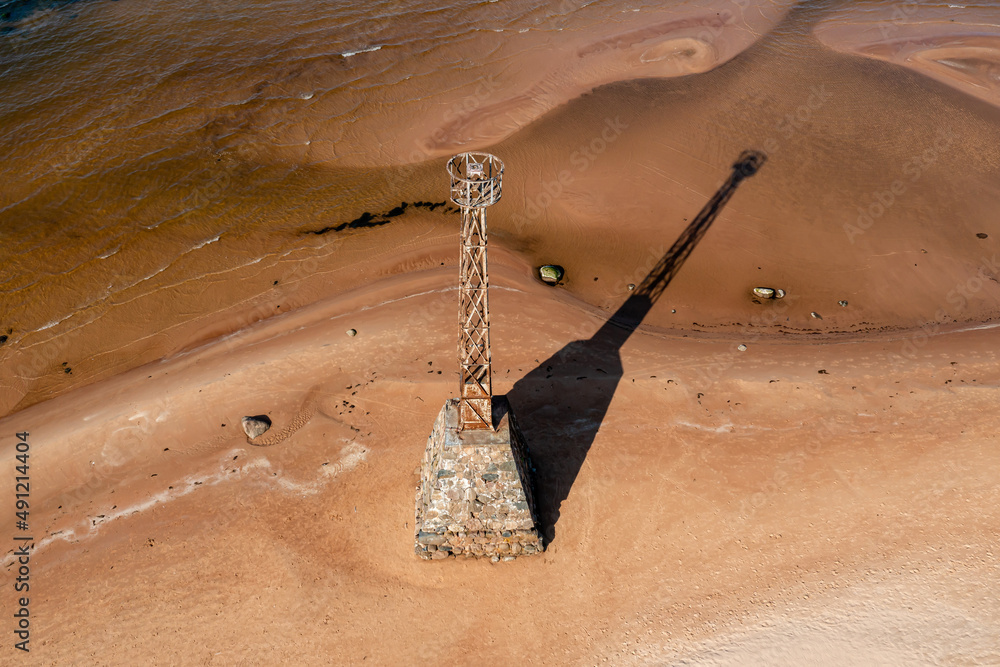 abandoned ruins of Kurmrags lighthouse on the Baltic coast, Latvia, view from above