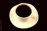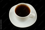 Coffee in a white cup on a black background
