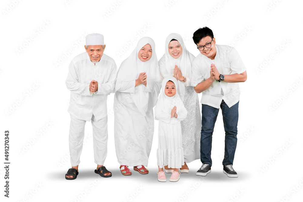 Muslim family show congratulate hands on studio