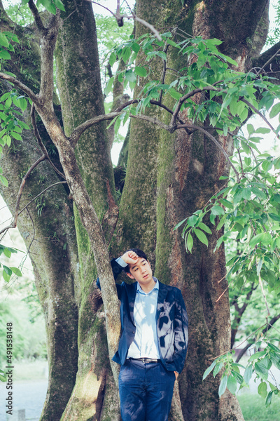 木と男性
