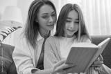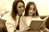 Mother and daughter reading book together