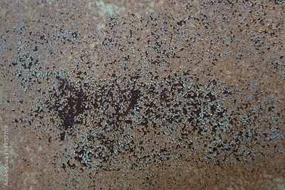 Gray brown rust texture. Old painted metal surface. Close-up. Dark rusty iron background with space for design. Grungy, distressed, weathered.
