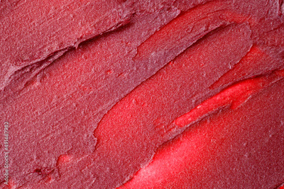 smudged of red matte metallic lipstick or creamy eye shadow texture cosmetic concept