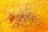 Rough old yellow orange texture. Painted metal surface. Cracked peeling paint. Rusty iron wall background with space for design.