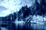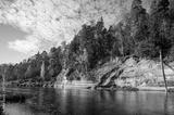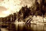 Devils rock and cave by the shores of the River Gauja, Sigulda, Latvia