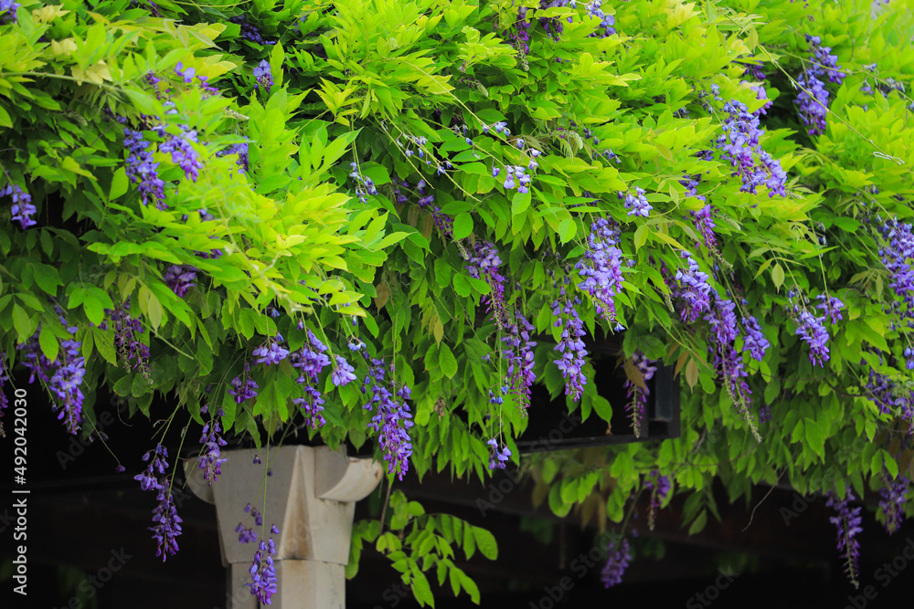 Wisteria plant with purple flowers