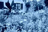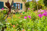 Beautifully maintained farmhouse garden with colorful flowers, in Bavaria, Southern Germany.
