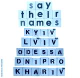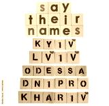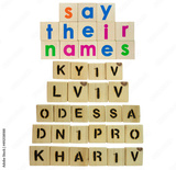 Say Their Names. Ukrainian cities concepts in blocks. Isolated.