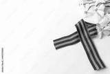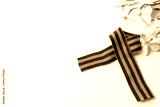 Banner for May 9. Military St. George ribbon, flowers, space for text. Great Victory Day 941-1945 and Defender of the Fatherland Day.