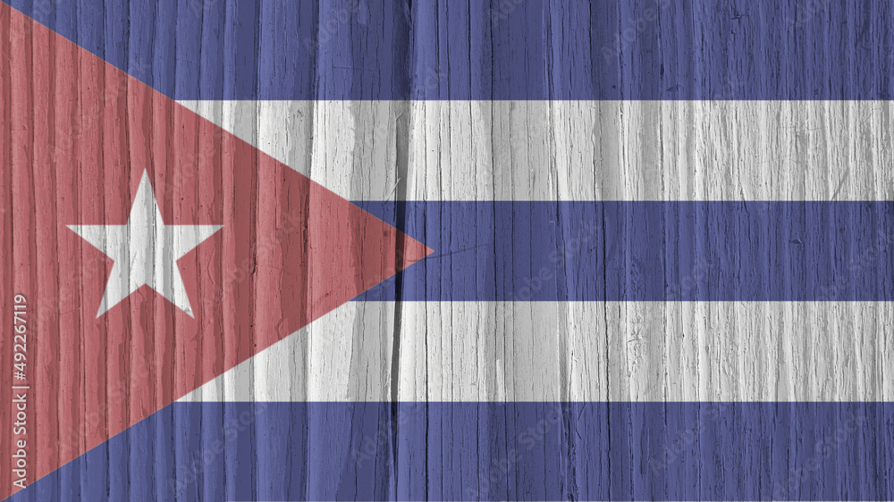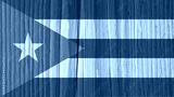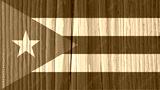 Cuban flag on a dry wooden surface. Natural wallpaper or background made of old wood. The official symbol of Cuba. Faded pale color