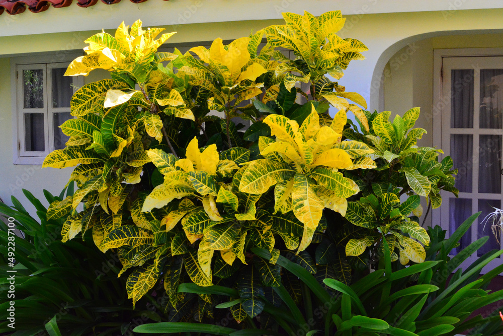 Beautiful yellow croton, Caribbean vegetation, plants in Punta Cana, Dominican Republic