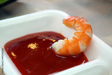 Korean food culture where you dip Parboiled shrimp in Sweet and Sour Red Chili Paste