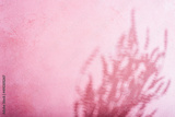 Pink concrete wall with plant shadow overlay. Tropical pastel background with lavender shade. Flat lay. Minimal sunlight summer wallpaper with floral silhouette.