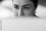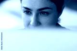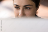 Close up face thoughtful millennial Indian woman worker employee above computer screen. Concentrated young lady work on pc online think on business document develop project startup create new solution