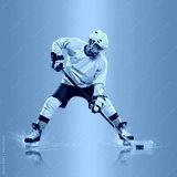 Professional ice hockey player hitting puck for winning goal in action on gradient multicolored neon background. Concept of sport competition.