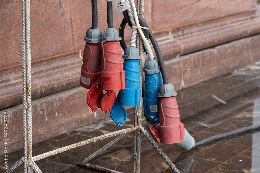 Temporary mobile outdoor distribution station. Electric switchboard.