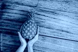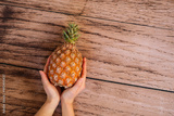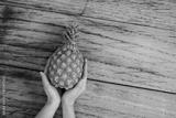 台湾産パイナップルを支える女性の手