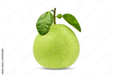 Green pomelo fruit with leaves isolated on white background with clipping path.