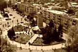 Aerial view of city center, clock tower - Giurgiu, Romania