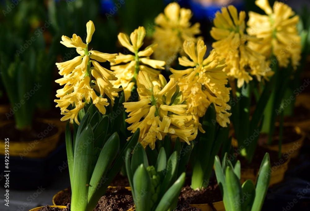 Yellow Hyacinthus orientalis, Garden Hyacinth flowers in spring