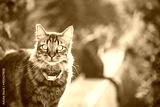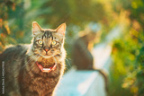 Gorgeous Gray Cat Outdoor Portrait In Sunny Day. Close Up.