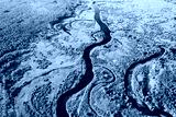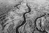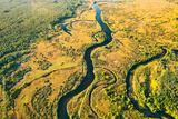 Aerial View Green Forest Woods And River Landscape In Sunny Summer Day. Top View Of Beautiful European Nature From High Attitude In Summer Season. Drone View. Bird's Eye View.