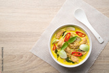 Thai Green Curry with Bouncy Pork and eggplant is a central Thai variety of curry (Gaeng Kiew Wan Moo Deng).Top view