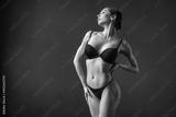 Beautiful sensual fitness woman with a good figure in black underwear, posing.