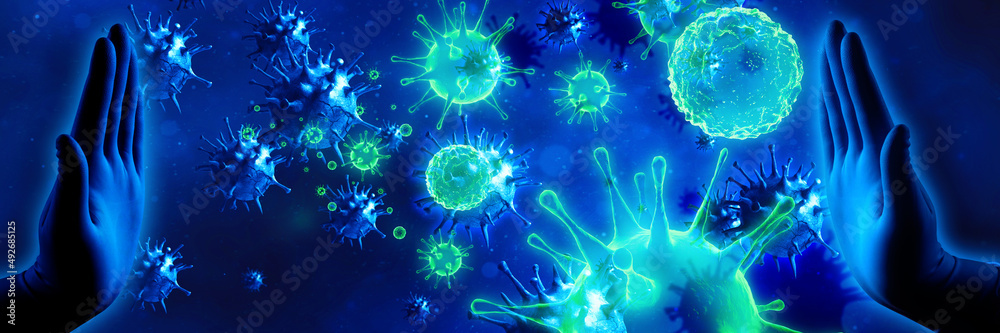 Stop corona virus background, pandemic risk concept. 3D illustration