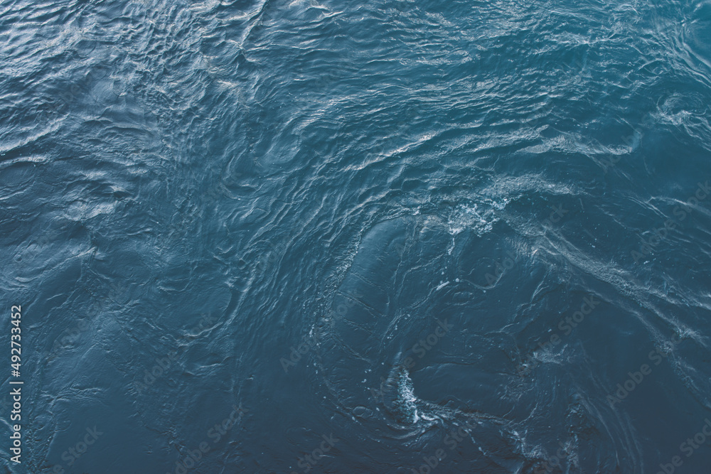 Blue sea surface with waves and ripples. Top view