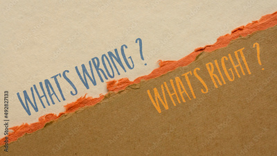 What is wrong? What is right? Handwriting on a handmade paper. Decision and ethics concept