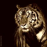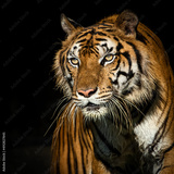 The tiger stands to look at something with interest.
