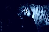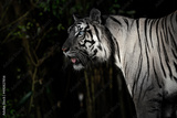 White tiger standing looking for food in the forest