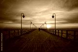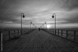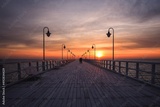 Beautiful morning seaside landscape. Wooden pier with a colorful sky in Gdynia, Poland.