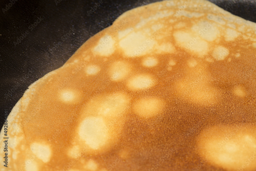 making very thin pancakes with Choux pastry, bubbly lacy texture