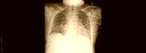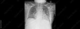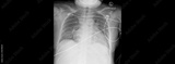 A photo of plain radiograph on dark background in hospital. The film use for diagnosis the illness of patient.Medical concept.A film chest of patient with corona virus infection with sever pneumonia.