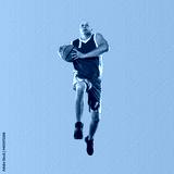Basketball players on Sports background, collage of different professional athletes on gradient multicolored neon background.