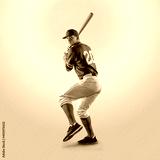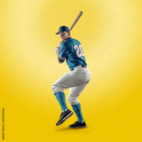 Baseball players in dynamic action in action on gradient multicolored neon background. Concept of sport competition.